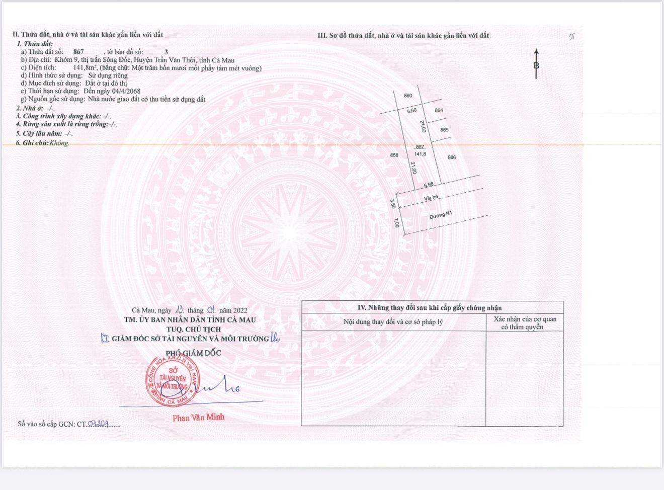 Huyện Trần Văn Thời, Cà MauMô tả: Đất nền dự án tại Thị trấn Sông Đốc, Trần Văn Thời, Cà Mau với diện tích 141.8m², mang lại cơ hội đầu tư hấp dẫn cho khách hàng. - Giá: 28 triệu VND/m².