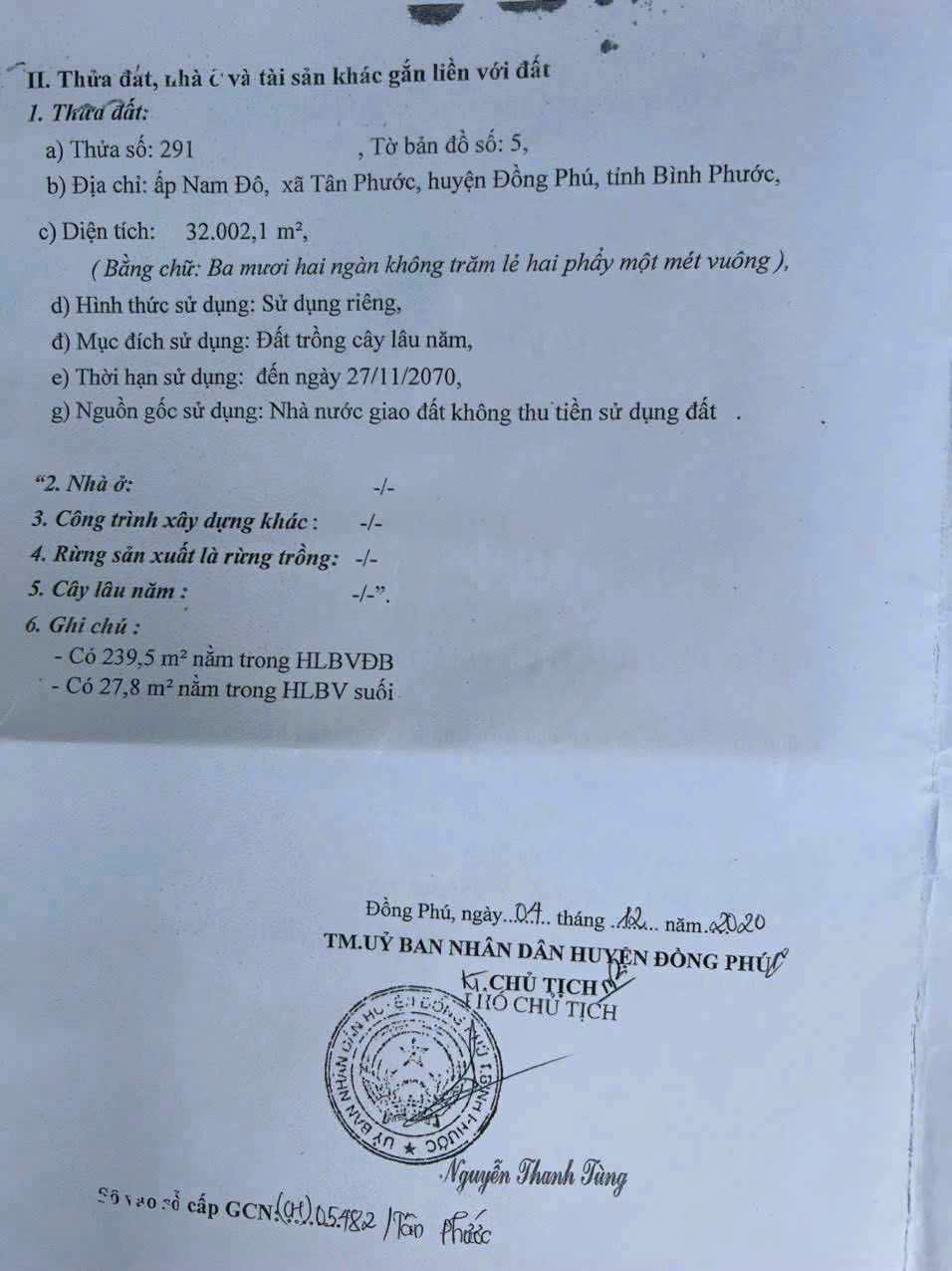 * Vị trí: Xã Tân Phước, huyện Đồng Phú ,Bình Phước