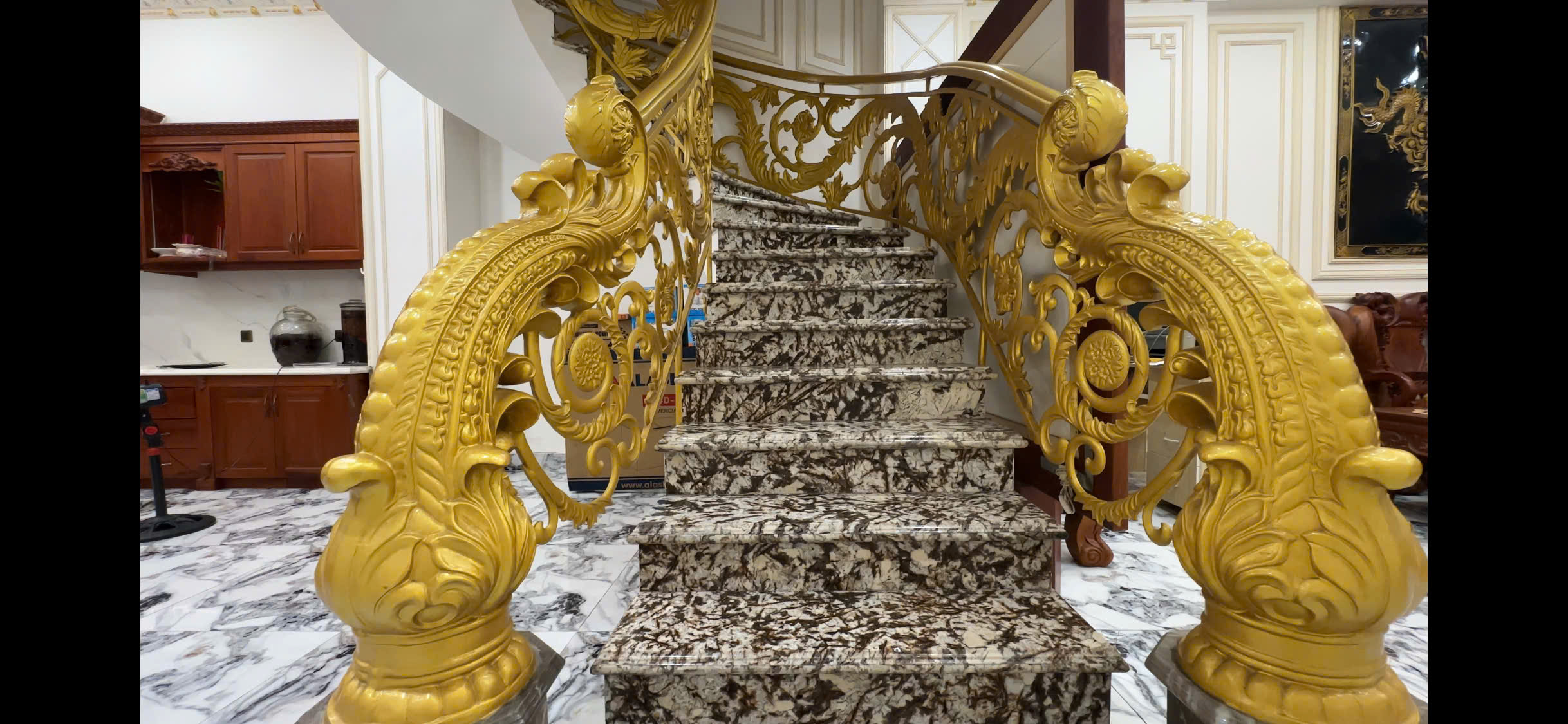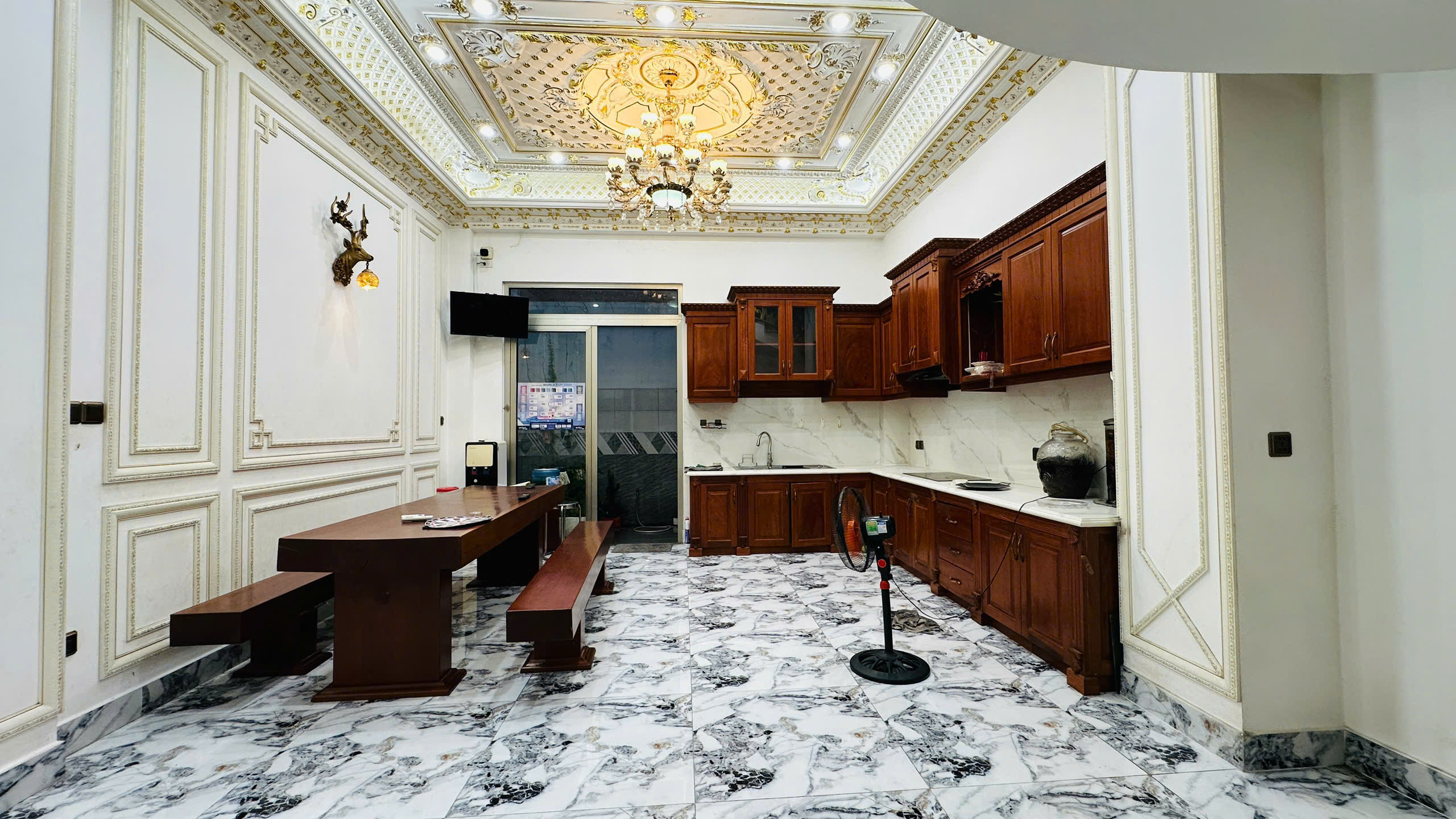 ✨ phòng tiếp khách: quy hoạch tráng lệ và trang nghiêm như biệt phủ hoàng gia, trần cao thoáng mát, đèn chùm pha lê lung linh.