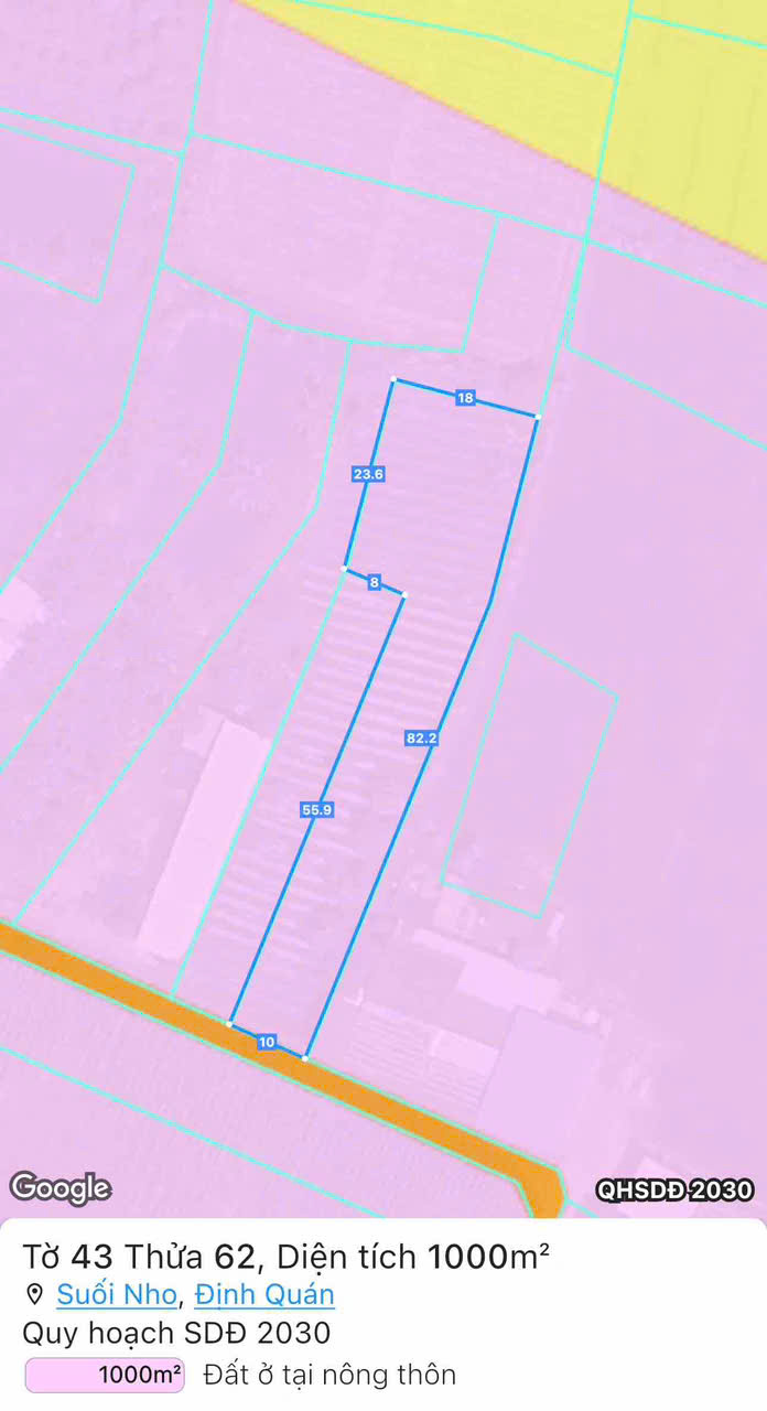 Huyện Định Quán, Đồng NaiCần bán lô đất diện tích 1000m²(ngang 10m) Hình chữ L, full hồng, tọa lạc tại xã Suối Nho, huyện Định Quán, tỉnh Đồng Nai.