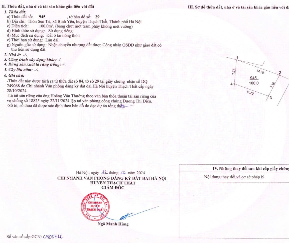 Diện tích: 100m2, full thổ cư
